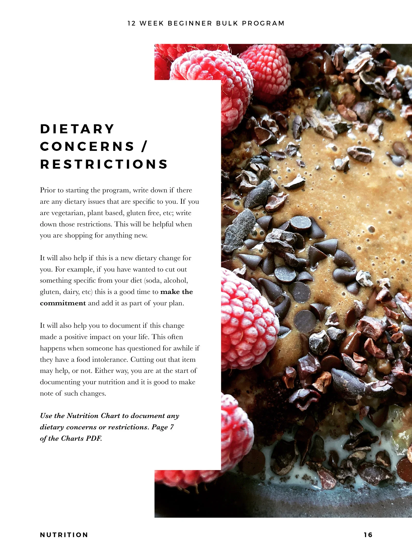 What the program includes: Goal setting tools, how to document your progress, how to adjust your training and nutrition to keep growing, how to set up macros and track them, how to train, 12 week evaluation, ALL workouts, and more.